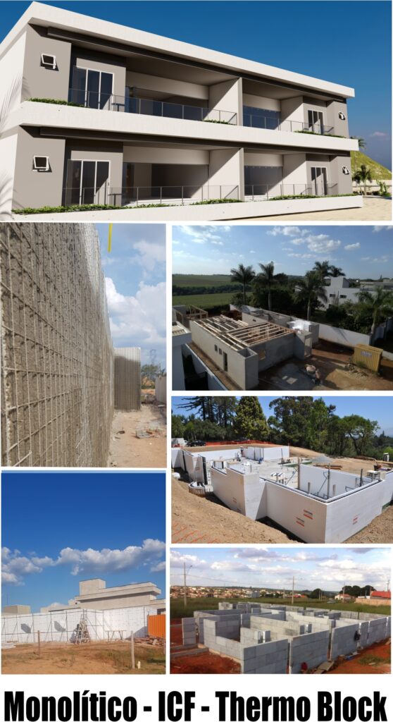 Os Sistemas Monolítico e ICF são estruturais, não há necessidade de pilar e viga como o convencional e o Thermo Block são blocos para vedação.